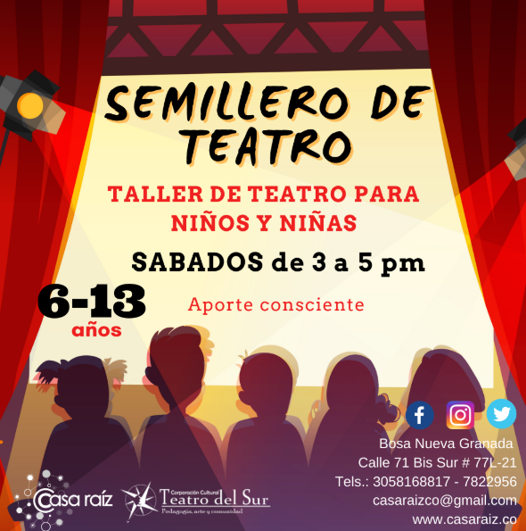 La Corporación Cultural Teatro del Sur tiene 19 años de trabajo teatral y comunitario, de construcción de procesos y sueños, teniendo como eje fundamental aportar a la construcción y desarrollo de tejido social, tomando como puntos de partida el teatro, que posibilita la integración de diversos campos artísticos, la pedagogía y la investigación, necesarias para el desarrollo de sujetos sociales capaces de pensarse a sí mismos y a la sociedad a la cual pertenecen.